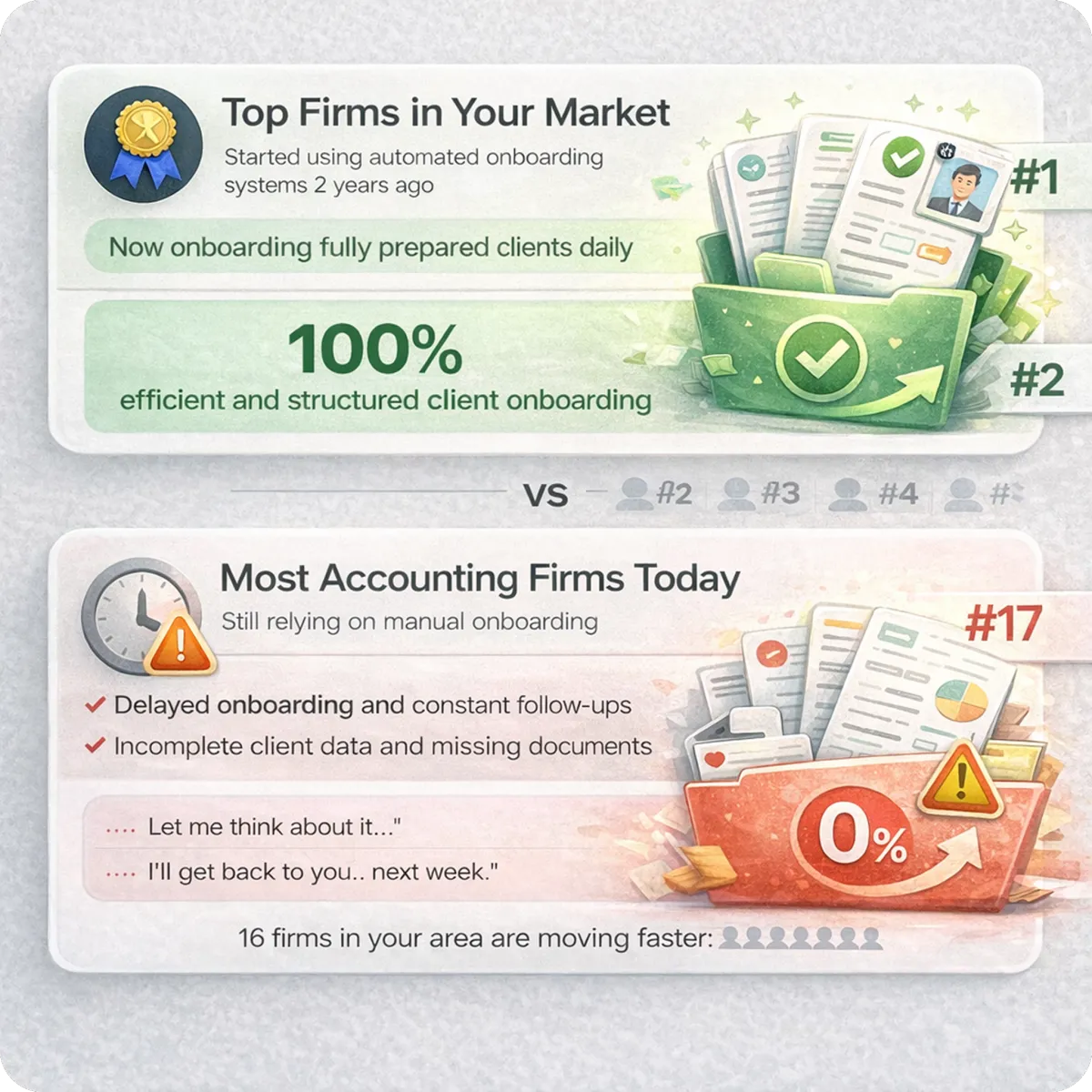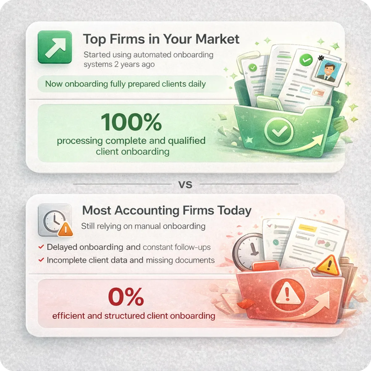 We analyze your current onboarding process, identify where delays and inefficiencies occur, and build a structured system that automates client qualification, document collection, and onboarding. Clients are guided step by step to submit complete information before your team gets involved, so you start engagements faster with fully prepared clients.